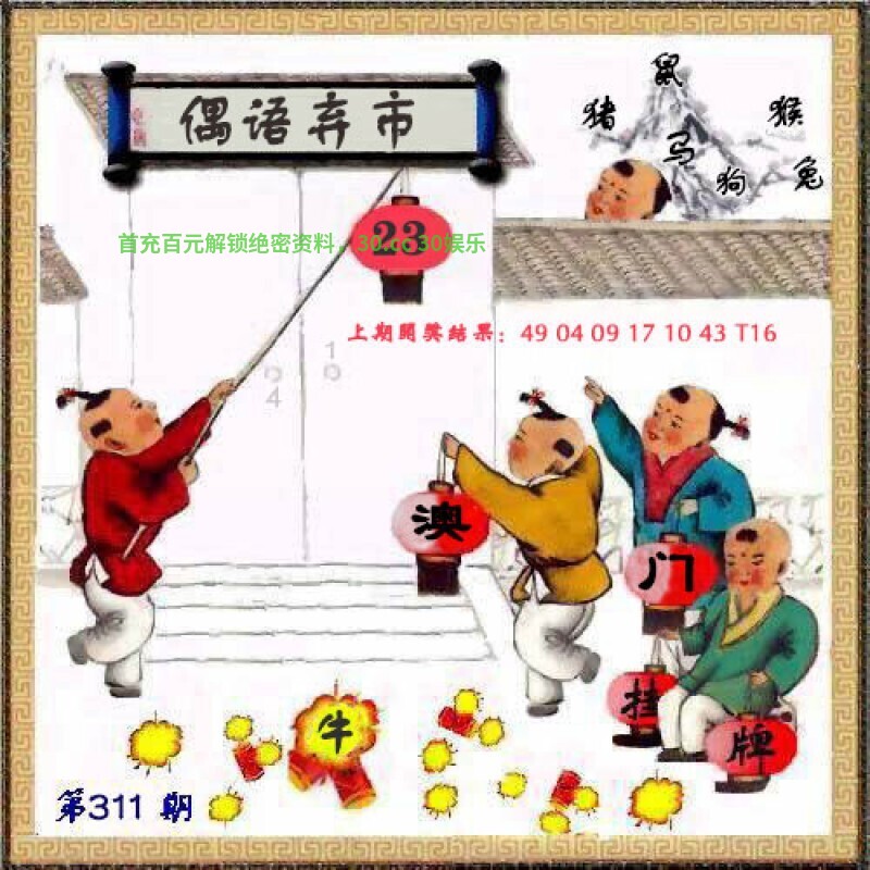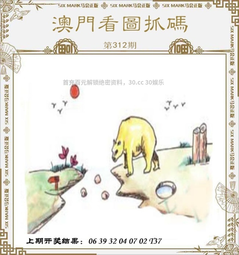 | 311期:【解抓码图】【开蛇37】 破解图文:图中有一只猪站在一片草地旁,旁边还有一些被折断的竹子,地上有两枚金币。 综合九肖:猪龙猴马鸡羊蛇牛兔 综合七肖:猪龙猴马鸡羊蛇 综合十码:19.31.02.34.12.21.11.37.17.27 |