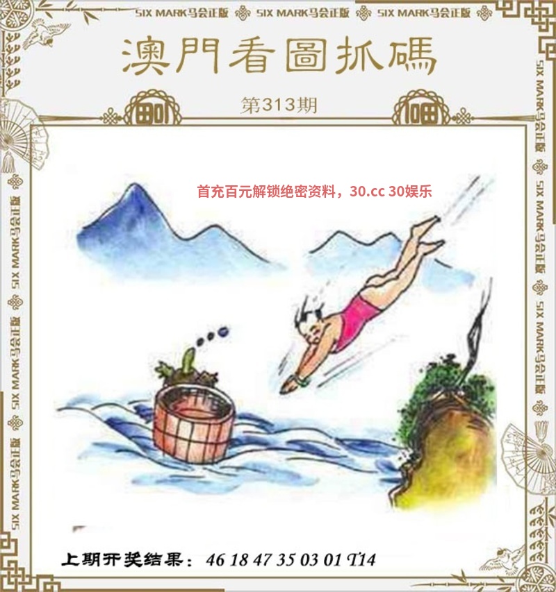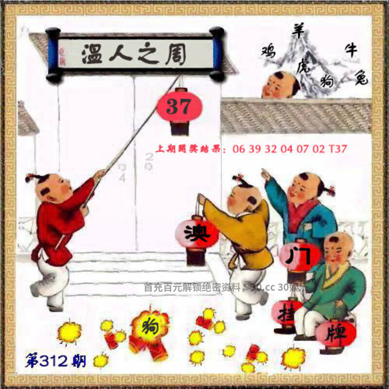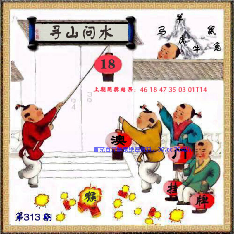 | 308期:【解抓码图】【开兔39】 破解图文:图中有一位男子手拿着一个竹子看着前方的大乌龟,左右两边有四个人,远处有山有两只鸟和一座太阳。 综合九肖:鸡猪龙羊猴兔马狗虎 综合七肖:鸡猪龙羊猴兔马 |
